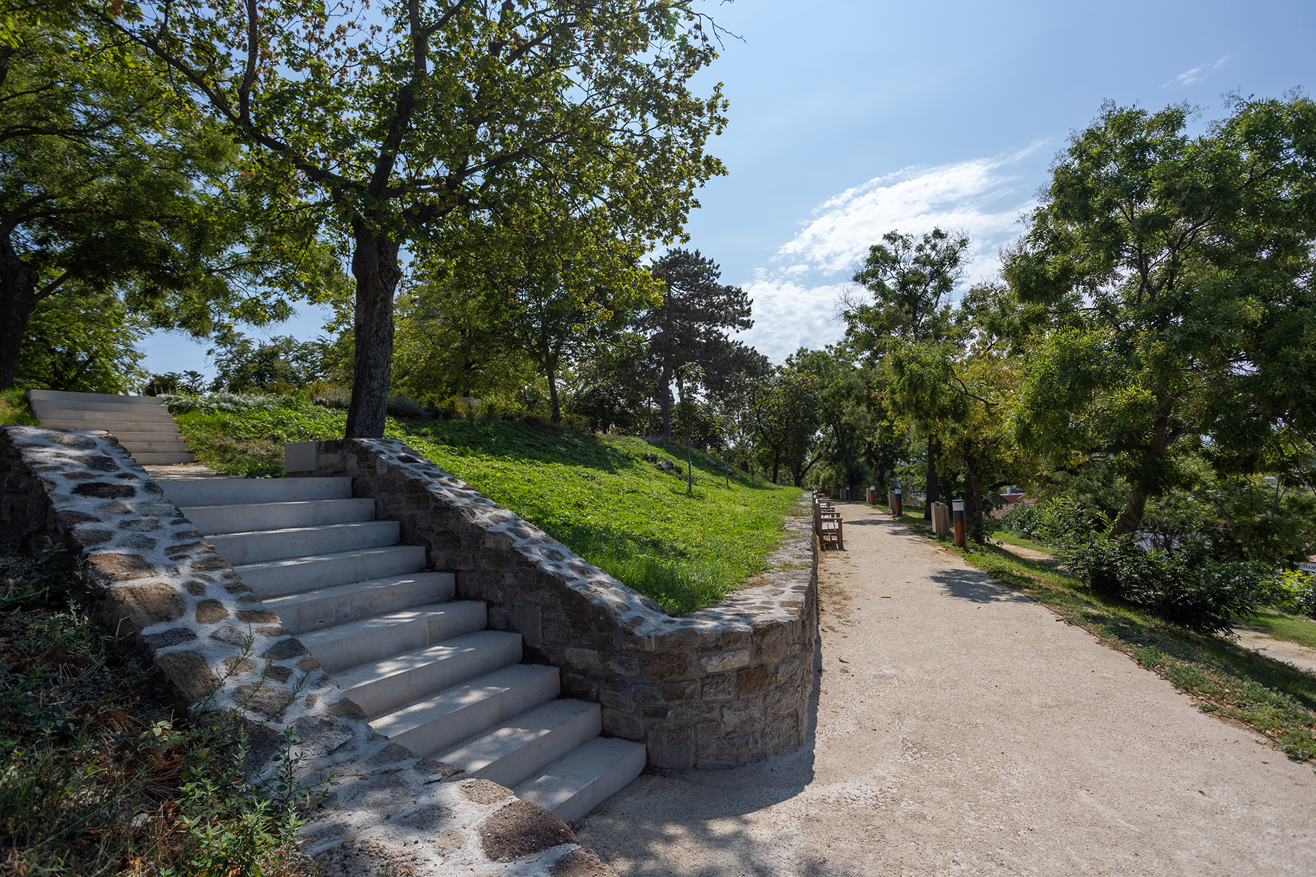 Spodní část spojená s lesíkem Csokonai se od zbytku parku liší nejen funkcí, ale i formou. Dosavadní provedení s opěrnými zdmi, úzkými terasami a schodišti zůstalo zachováno. I zde bylo cílem zatraktivnit tuto část parku novými funkcemi.