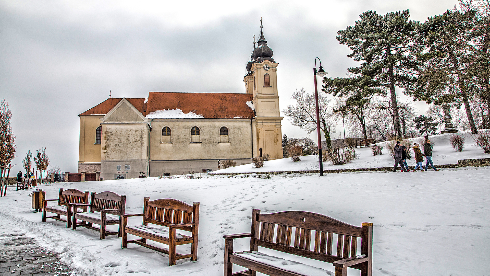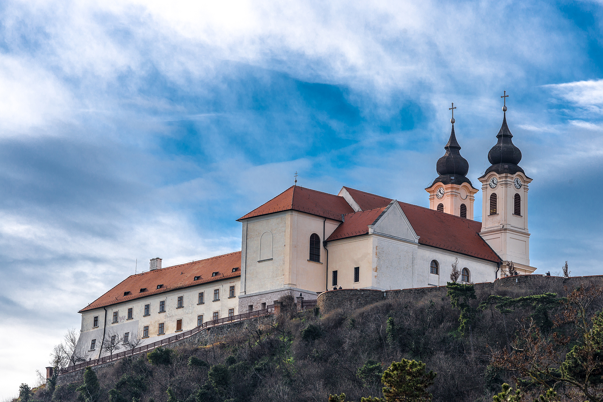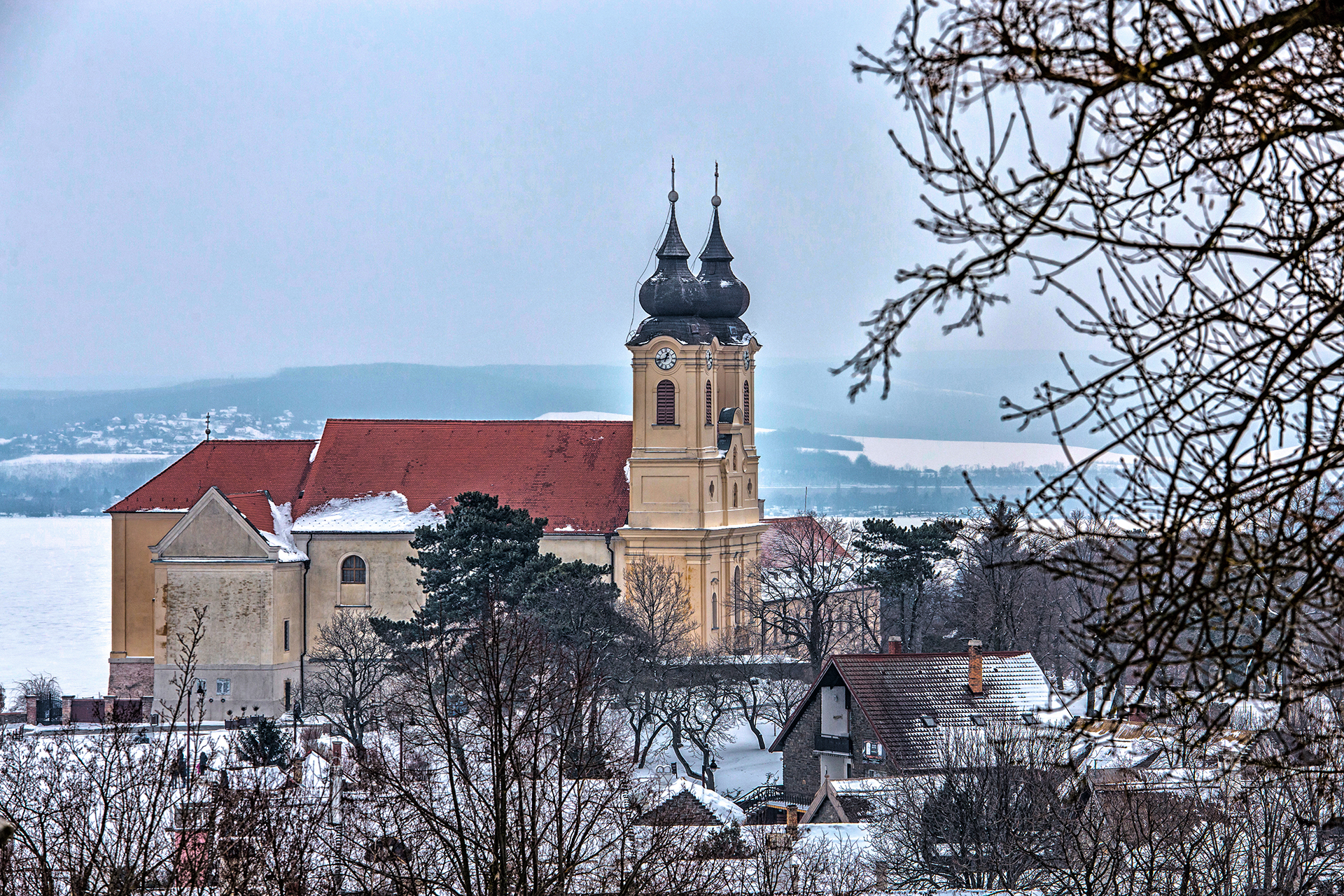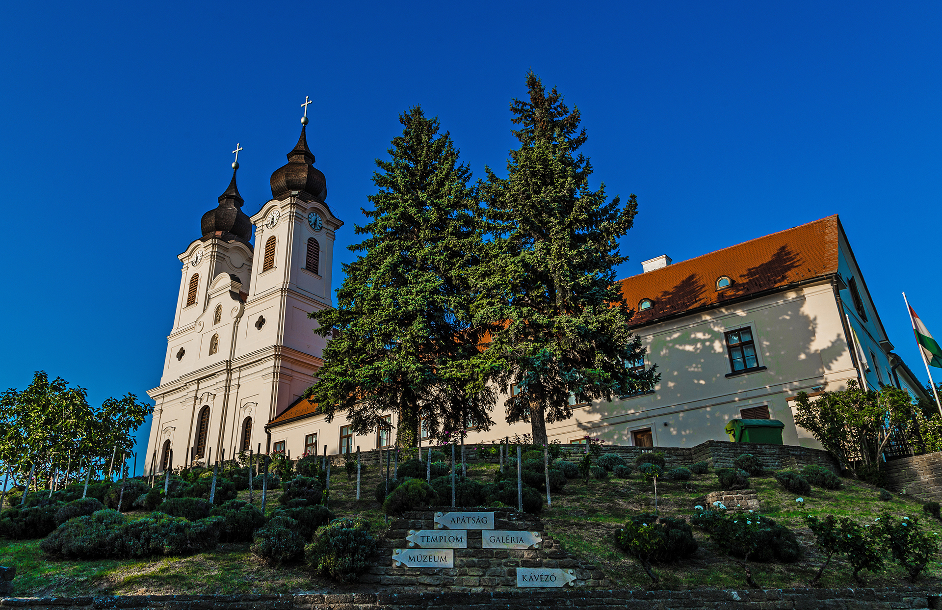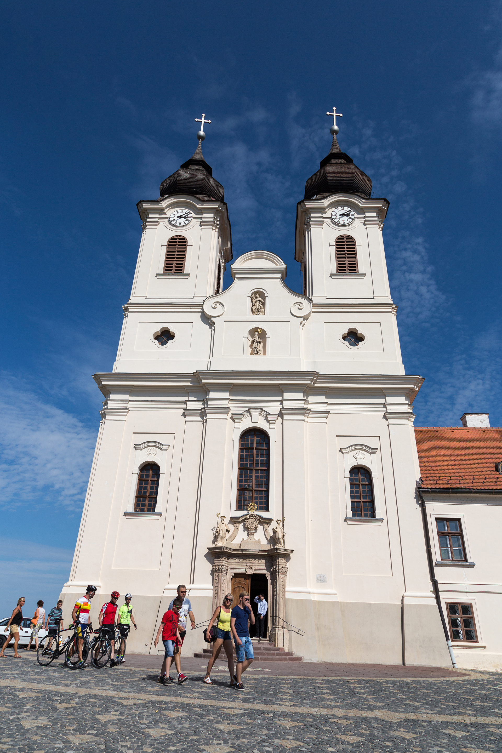 Do 1754 r. kościół zbudowany w stylu barokowym został całkowicie ukończony. Miał 46 metrów długości, 16 metrów szerokości, a jego wieże miały 35 metrów wysokości. Budynek znajduje się 80 metrów nad poziomem Balatonu. Do dziś wyróżnia się na zabudowanym zboczu wzgórza, a XVIII wieku na jałowym wzgórzu mógł wyglądać jeszcze bardziej okazale. Opactwo, które było własnością państwa przed zmianą ustroju, zostało zwrócone zakonowi benedyktynów w 1993 roku.